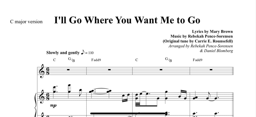 This re-imagined hymn version of the beloved hymn: "I'll Go Where You Want Me To Go" was written with the hope that you hear and feel the lyrics in a new way. So that you might feel the words in a different light to inspire faith to go, say, and be exactly what He would desire for you. This hymn was written so that it could appropriately be sung at any event but most especially with sacrament meeting in mind. As the hymns invite the spirit in ways that most music can't. I hope you love this new rendition of I'll Go Where You Want Me To Go! And I hope you love playing/performing this song!! -Bekah